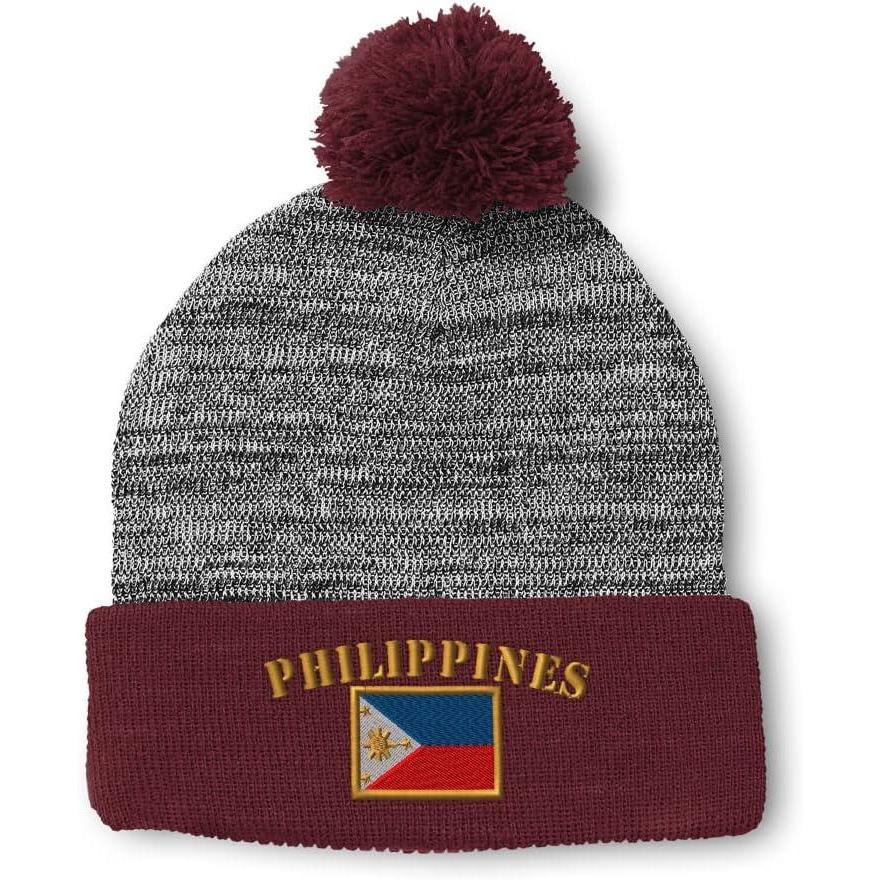 Custom Pom Pom Beanies for Women Philippines Flag Embroidery Skull Cap Winter Hats for Men Acrylic 1 Size(Heather Gray Burgundy Design Only)
