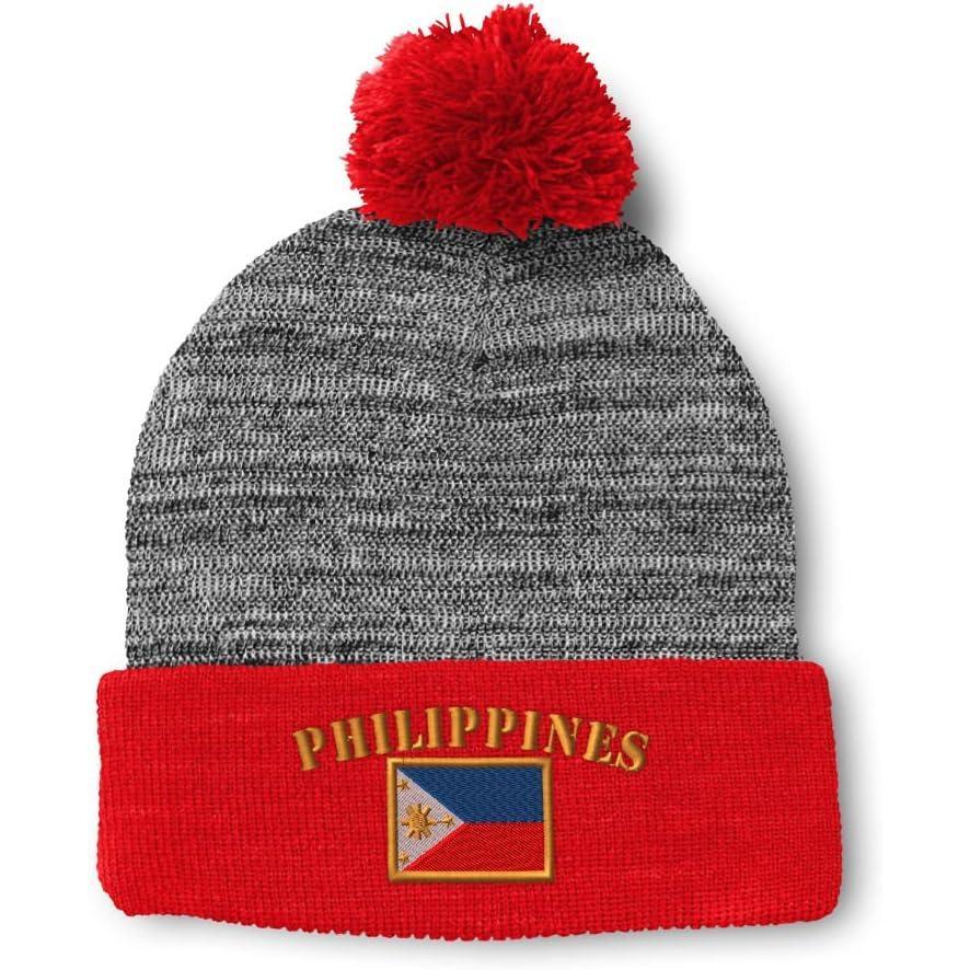 imageCustom Pom Pom Beanies for Women Philippines Flag Embroidery Skull Cap Winter Hats for Men Acrylic 1 SizeHeather Gray Red Personalized Text Here