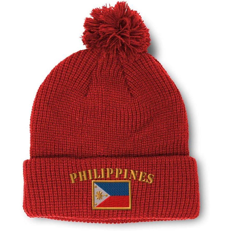 Custom Pom Pom Beanies for Women Philippines Flag Embroidery Skull Cap Winter Hats for Men Acrylic 1 Size(Red Design Only)