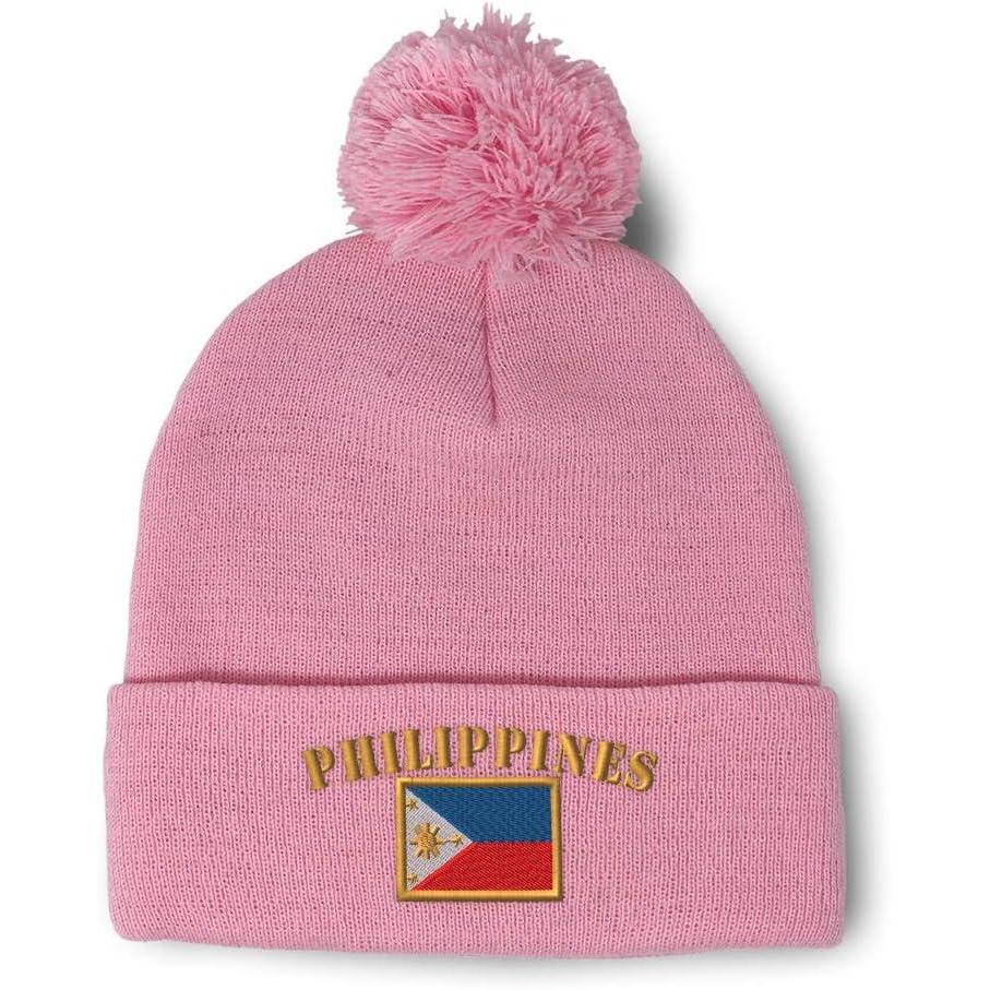 Custom Pom Pom Beanies for Women Philippines Flag Embroidery Skull Cap Winter Hats for Men Acrylic 1 Size(Soft Pink Design Only)