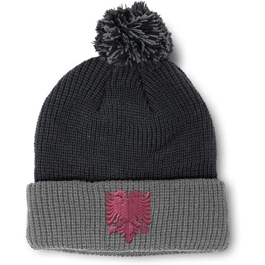 Custom Pom Pom Beanies for Women Pink Albanian Eagle Albania Embroidery Skull Cap Flags Acrylic 1 Size(Black Grey Design Only)