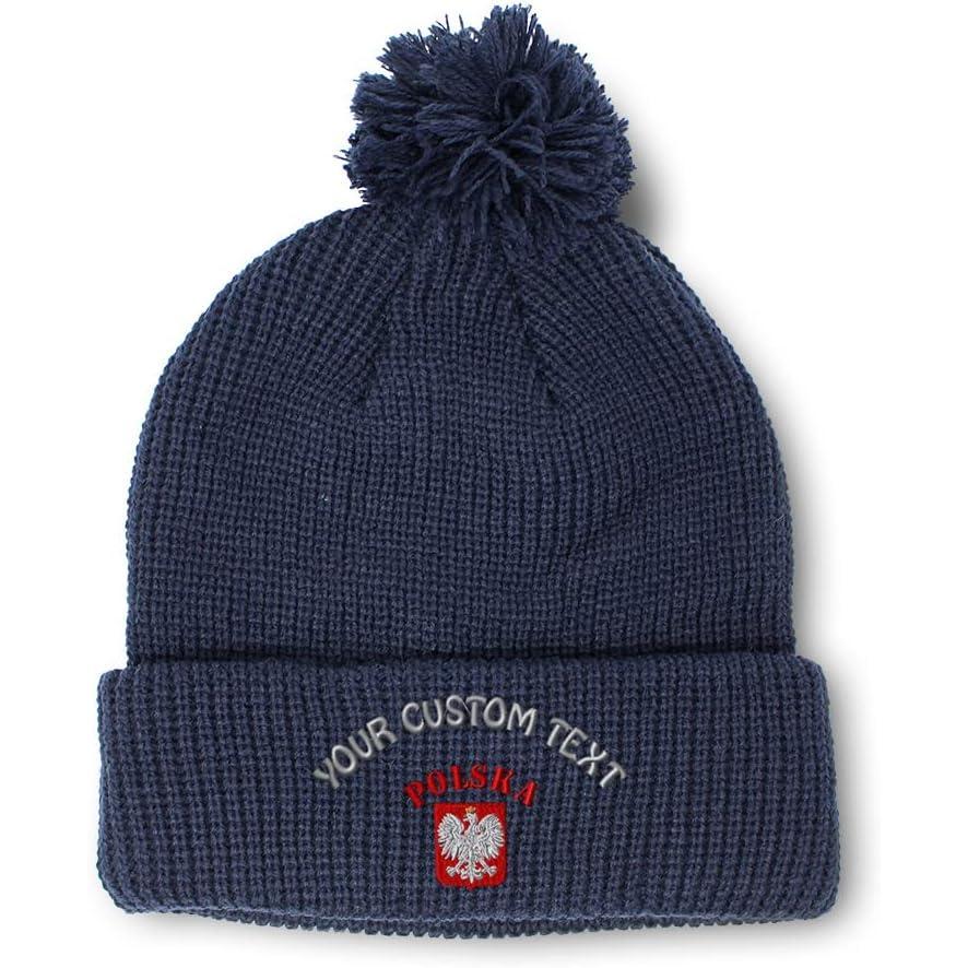 Custom Pom Pom Beanies for Women Poland Polska Seal Flag Embroidery Skull Cap Winter Hats for Men 1 Size(Navy Personalized Text Here)