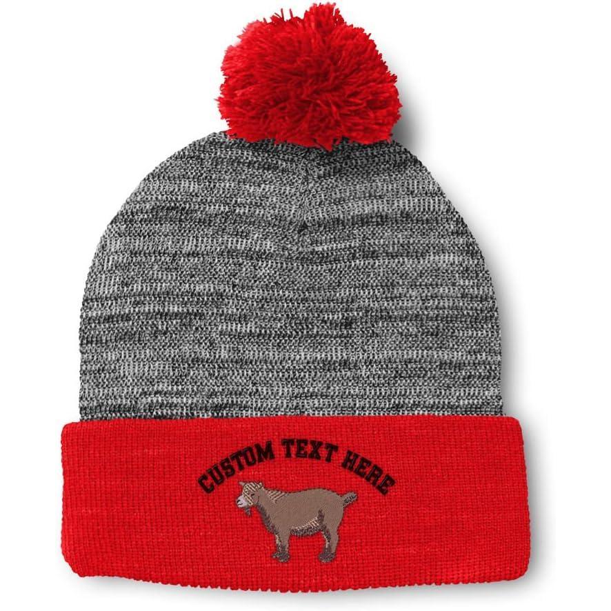 Custom Pom Pom Beanies for Women Pygmy Goat Embroidery Skull Cap Winter Hats for Men Acrylic 1 Size(Heather Gray Red Personalized Text Here)
