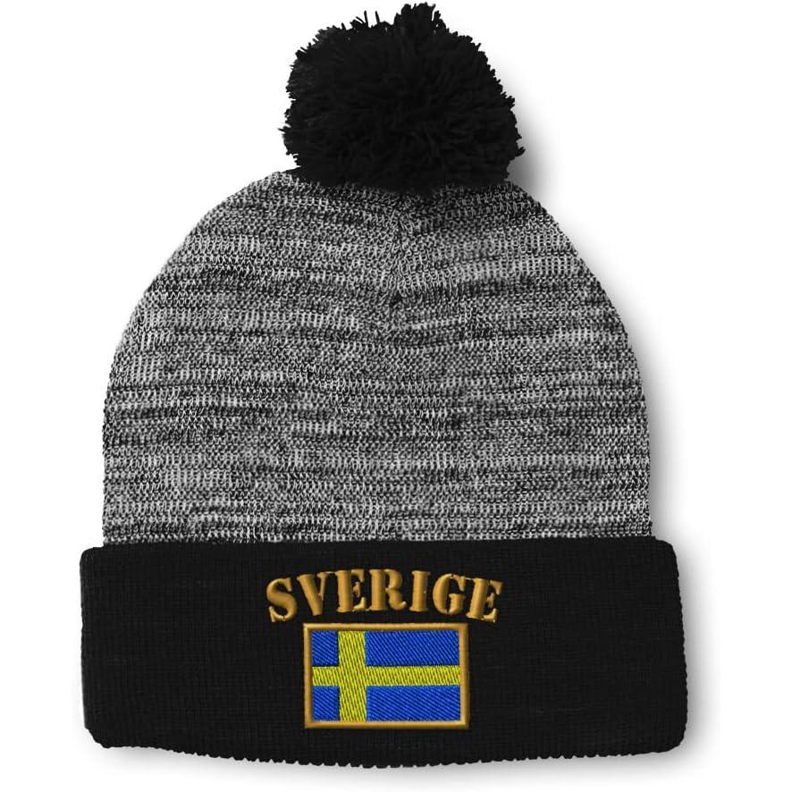 Custom Pom Pom Beanies for Women Sweden Sverige Flag Embroidery Skull Cap Flags Winter Hats for Men 1 Size(Heather Gray Black Design Only)