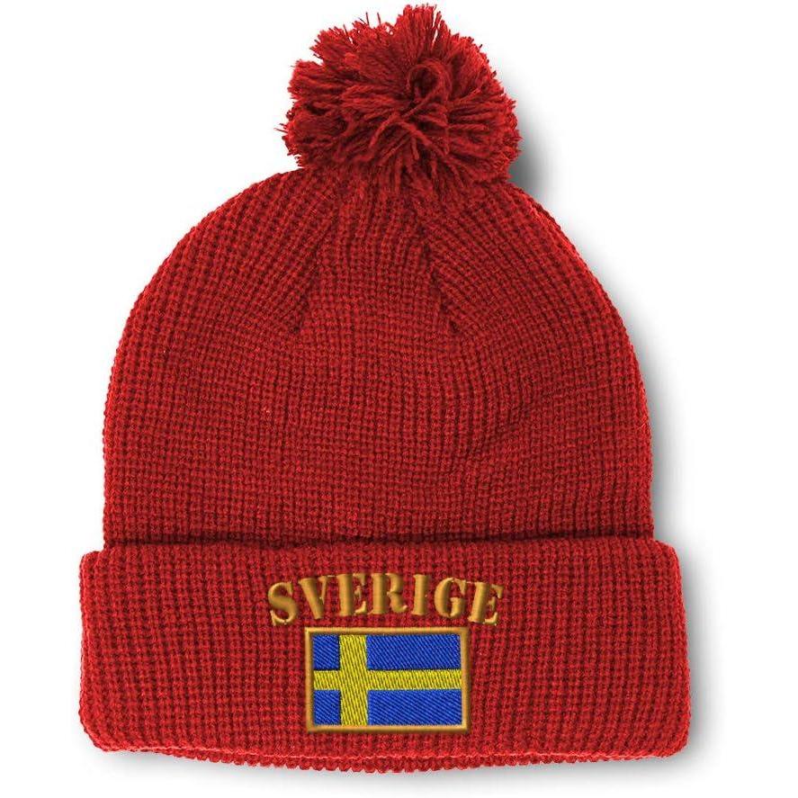Custom Pom Pom Beanies for Women Sweden Sverige Flag Embroidery Skull Cap Flags Winter Hats for Men 1 Size(Red Design Only)