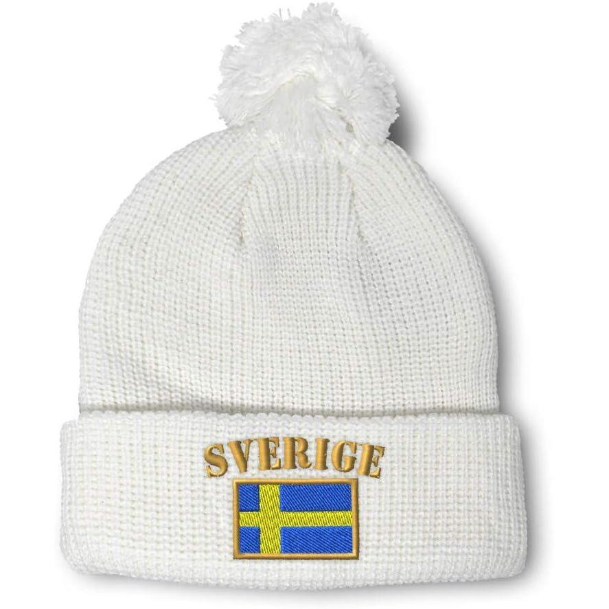 imageCustom Pom Pom Beanies for Women Sweden Sverige Flag Embroidery Skull Cap Flags Winter Hats for Men 1 SizeAmerican Flag Personalized Text Here