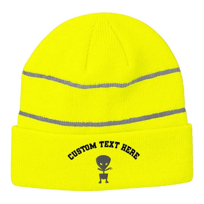 Custom Reflective Beanie Alien Baby Embroidery Acrylic High Visibility Running Gear Skull Cap for Men & Women Neon Yellow Personalized Text Here(Custom Reflective Beanie Alien Baby Embroidery Acrylic High Visibility Running Gear Skull Cap for Men & Women Neon Yellow Personalized Text Here)