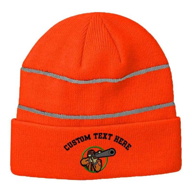 Custom Reflective Beanie Hunting Logo Embroidery Acrylic(Neon Orange Personalized Text Here)