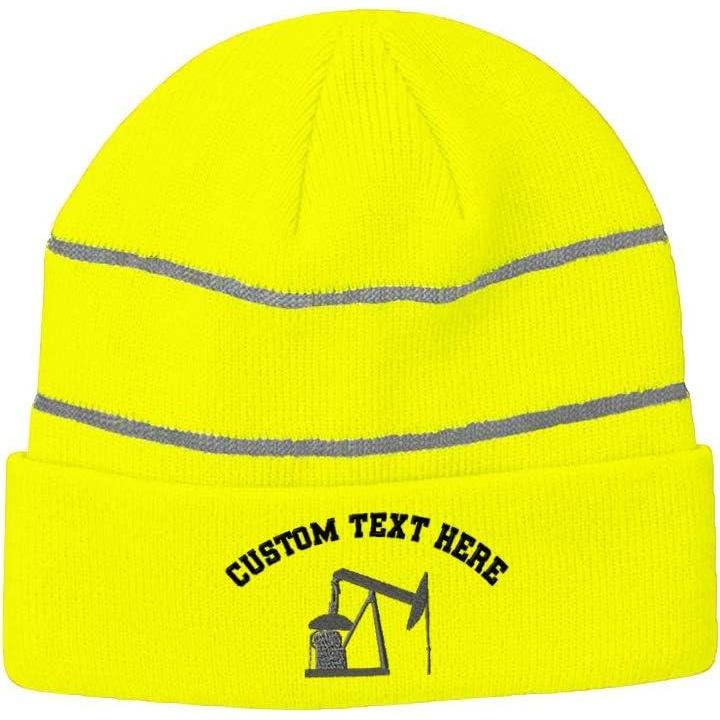 Custom Reflective Beanie Oil Rig Drilling A Embroidery Acrylic High Visibility Running Gear Skull Cap for Men & Women Neon Yellow Personalized Text Here