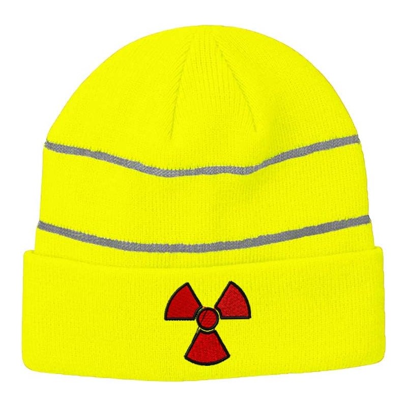 Custom Reflective Beanie Radiation Sign Embroidery Acrylic High Visibility Running Gear Skull Cap for Men & Women Neon Yellow Design Only(Custom Reflective Beanie Radiation Sign Embroidery Acrylic High Visibility Running Gear Skull Cap for Men & Women Neon Yellow Design Only)