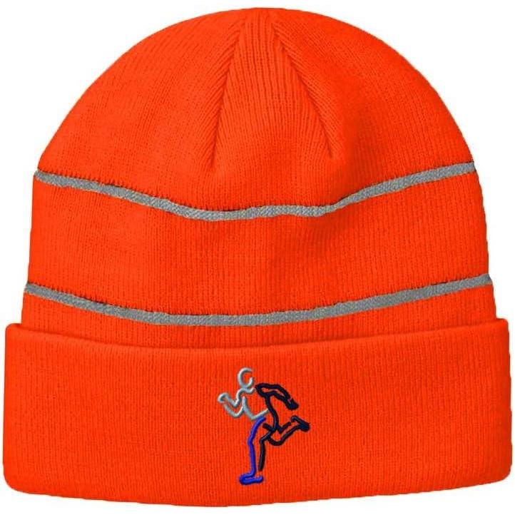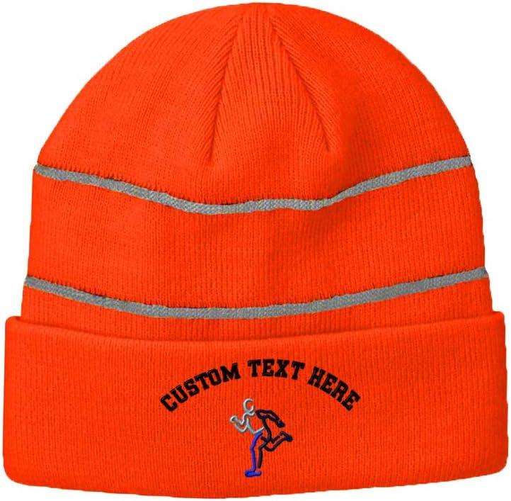 Custom Reflective Beanie Track Runner Embroidery Acrylic(Neon Orange)