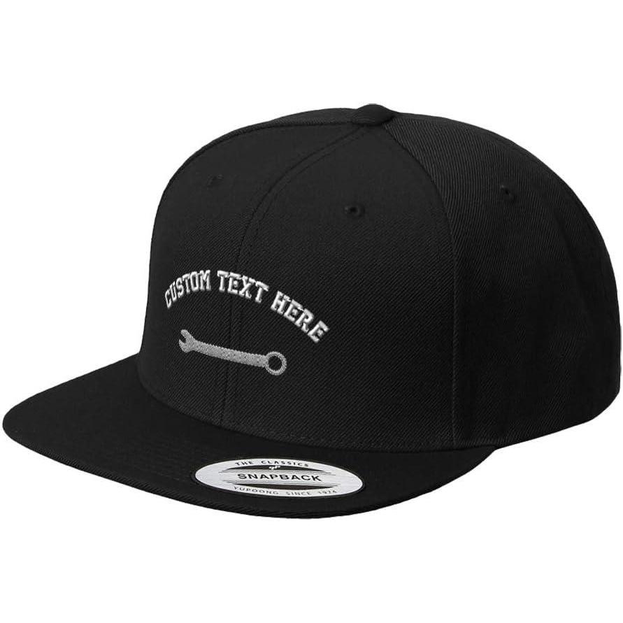 Custom Snapback Baseball Cap Mechanic Wrench Embroidery Flat Bill Hard Hat Snaps(Black)