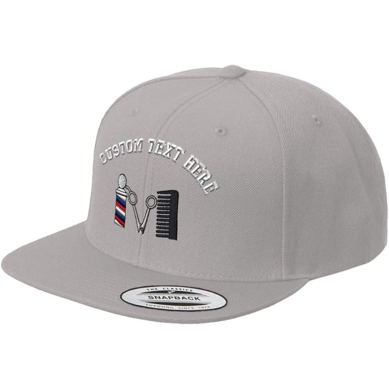 Custom Snapback Hats for Men & Women Barber Logo Embroidery Acrylic(Silver Personalized Text Here)