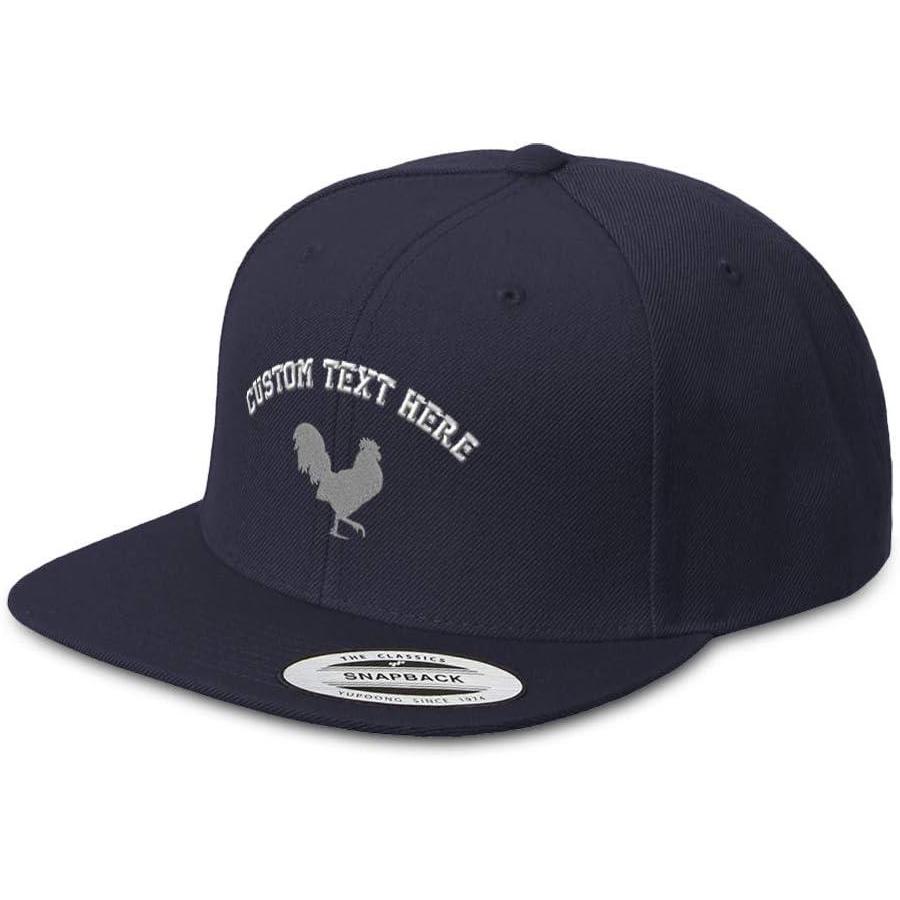Custom Snapback Hats for Men & Women Grey Rooster in A Poultry Embroidery(Navy Personalized Text Here)