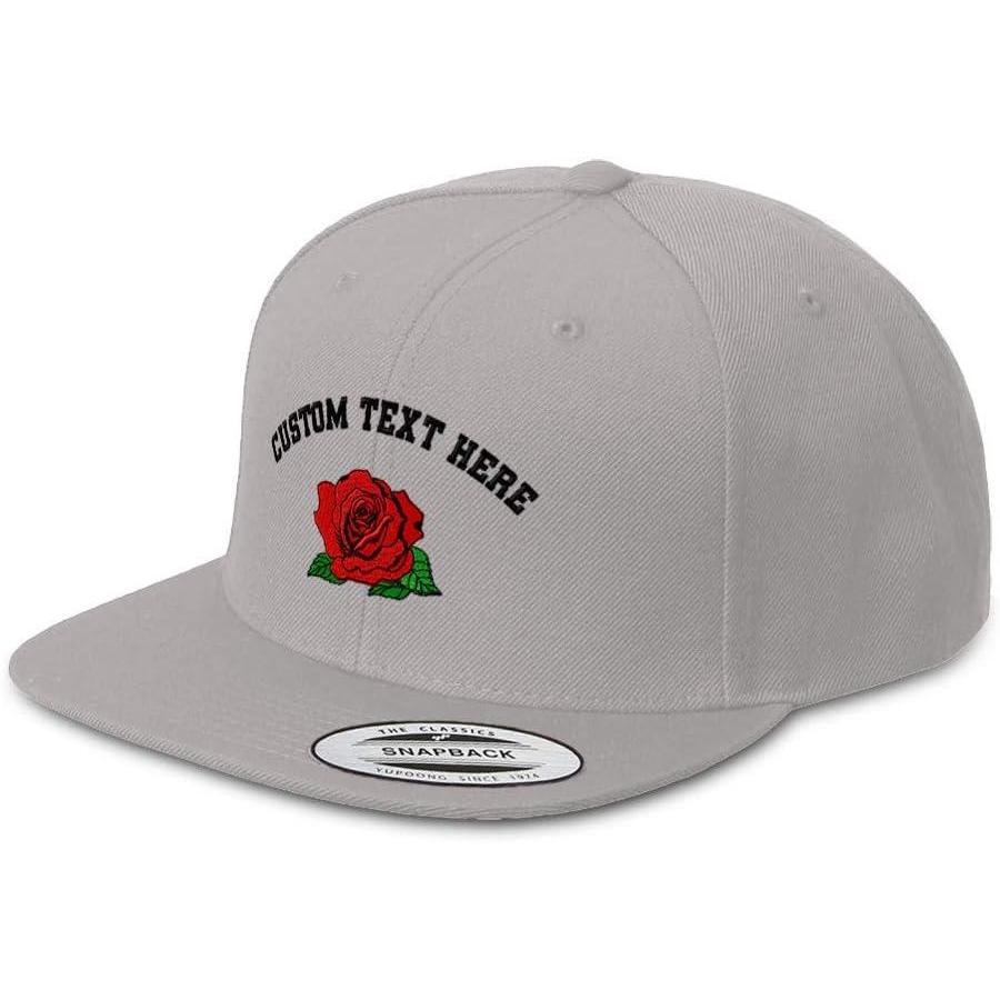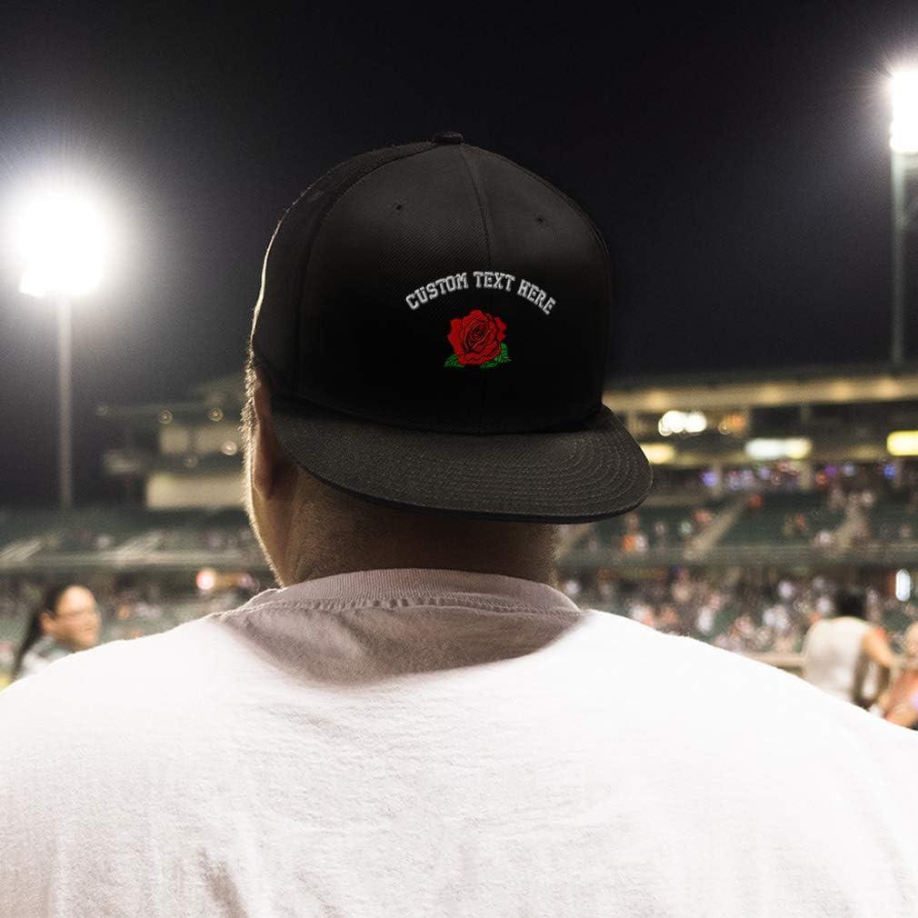 Custom Snapback Hats for Men & Women Red Rose Embroidery Flat Bill Baseball Cap(Silver Personalized Text Here)
