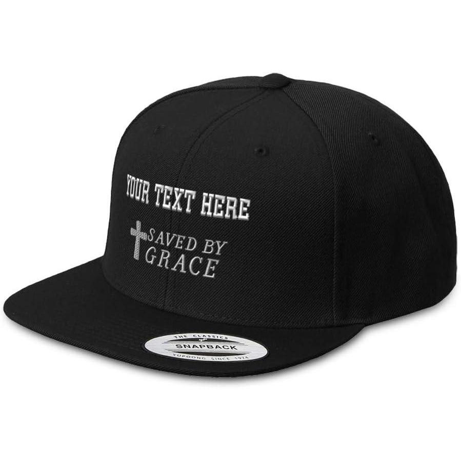 Custom Snapback Hats for Men & Women Saved by Grace Jesus Christian Embroidery(Black Personalized Text Here)
