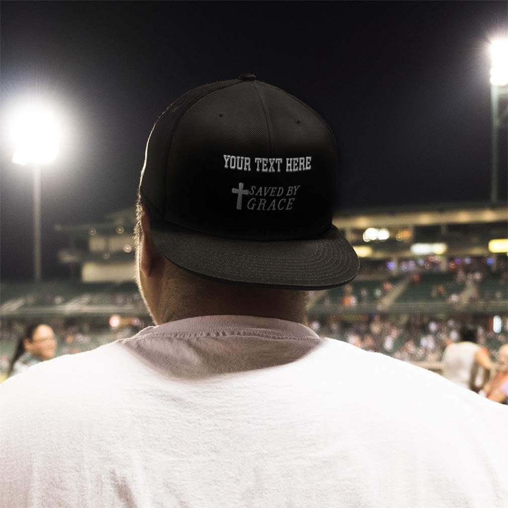 Custom Snapback Hats for Men & Women Saved by Grace Jesus Christian Embroidery(Black Personalized Text Here)