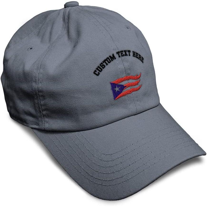 Custom Soft Baseball Cap Puerto Rico Flame Flag Black Embroidery Flags Twill Cotton Dad Hats for Men & Women(Dark Grey Personalized Text Here)