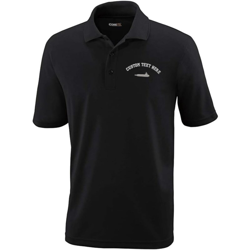 Custom Text Embroidered Whole Submarine Mens Adult Button-End Spread Short Sleeve Polyester Proformance Polo Shirt Golf Shirt – Black, Large(Custom Text Embroidered Whole Submarine Mens Adult Button-End Spread Short Sleeve Polyester Proformance Polo Shirt Golf Shirt – Black, Large)