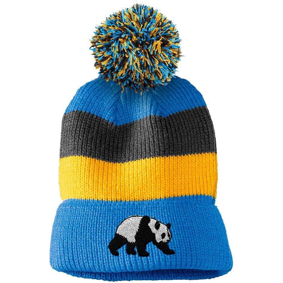 Custom Vintage Pom Pom Beanie Panda Bear Embroidery Acrylic Skull Cap Hat for Men & Women Light Blue Stripes Design Only