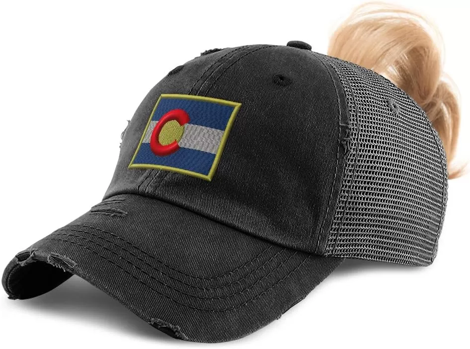 Perfect for someone who is looking for Embroidery ponytail hats, Places & Travel distressed vintage hats, United States ponycaps, Colorado State Flag Embroidery trucker hats, washed out hats, hats for women, womens hats, cotton hats, baseball caps, mom hats.