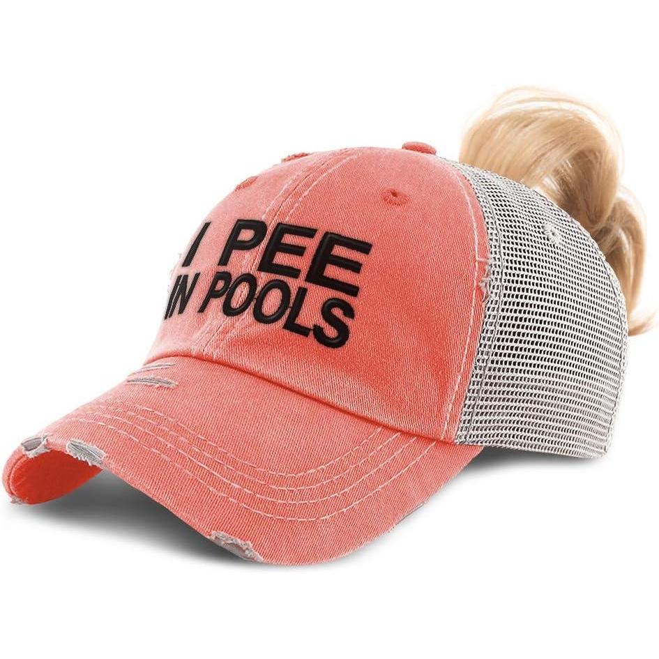 Custom Womens Ponytail Cap I Pee in Pools A Embroidery Distressed Trucker Hats(Coral Design Only)