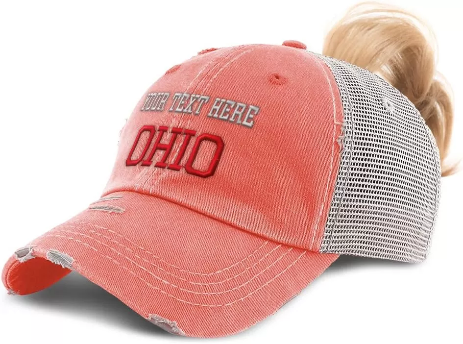 Custom Womens Ponytail Cap Ohio State USA America B Embroidery Cotton(Coral Personalized Text Here)
