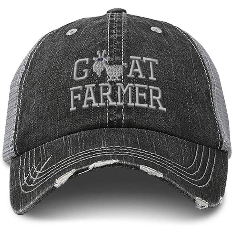 Distressed Trucker Hat Goat Farmer B Embroidery for Men & Women Black Gray