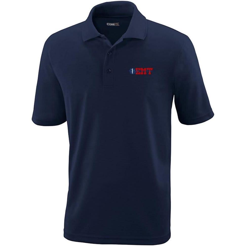EMT Paramedic Logo Embroidery Design Adult Button-End Spread Short Sleeve Unisex Polyester Performance Polo Shirt Golf Shirt – Navy, Medium