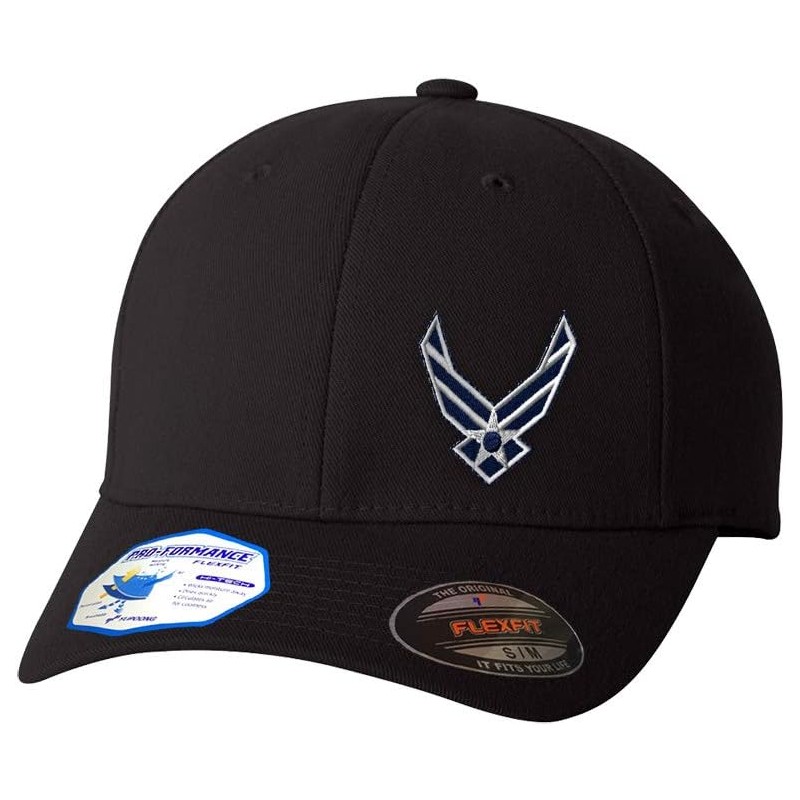 Flexfit Left Side Panel Air Force Emblem Embroidery Hats for Men & Women(Black)