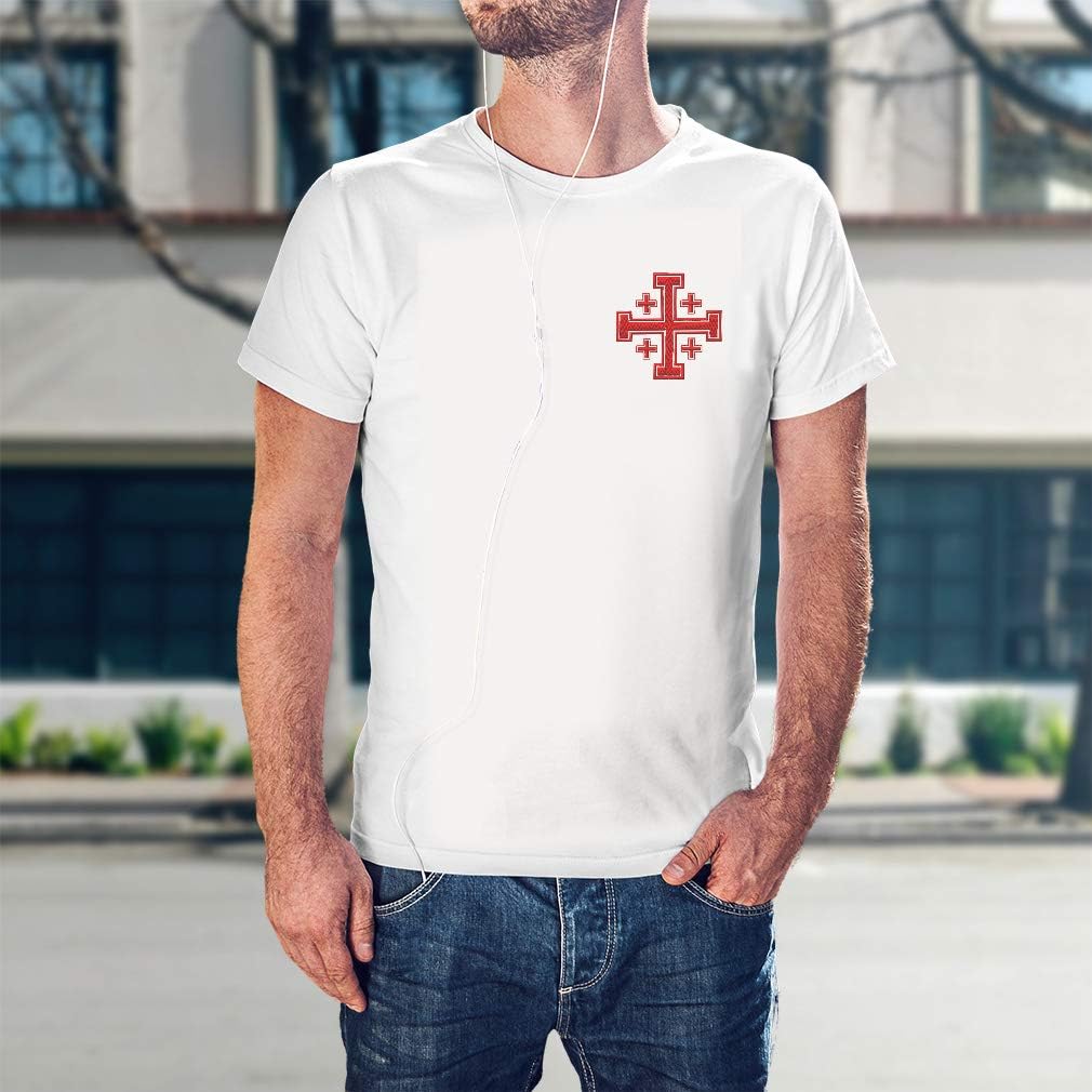 Funny Graphic T Shirts for Men Jerusalem Cross B Cotton Top(White)
