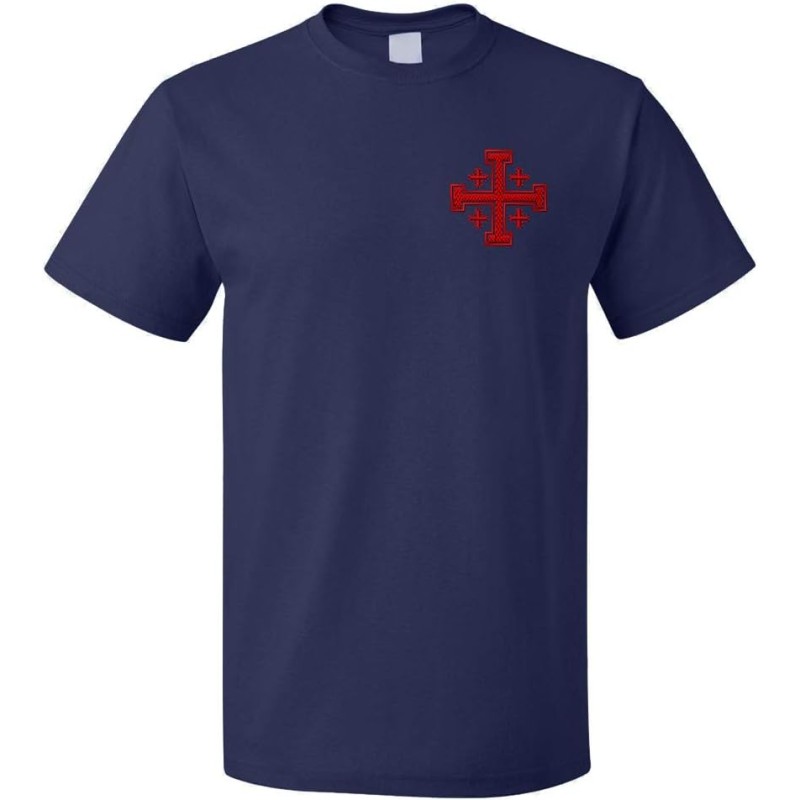 Funny Graphic T Shirts for Men Jerusalem Cross B Cotton Top(Navy)