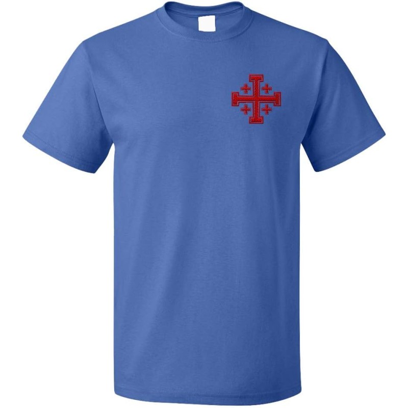 Funny Graphic T Shirts for Men Jerusalem Cross B Cotton Top(Royal Blue)