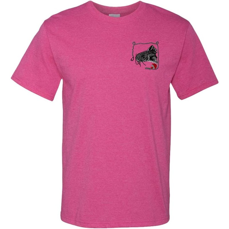 Funny Graphic T Shirts for Men Sport Fishing Catfish Cotton Top(Hot Pink)