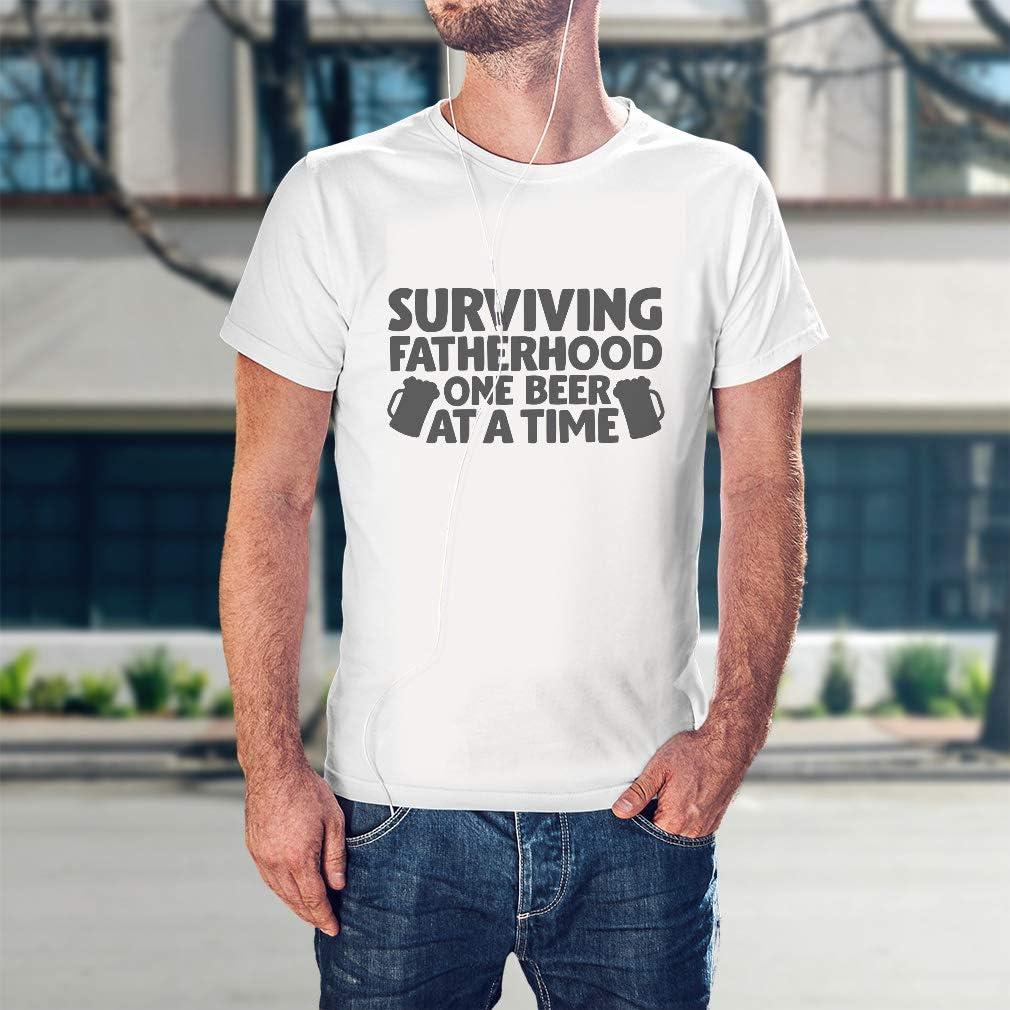 Funny Graphic T Shirts Surviving Fatherhood 1 Beer at A Time Dad Cotton Top(Red)