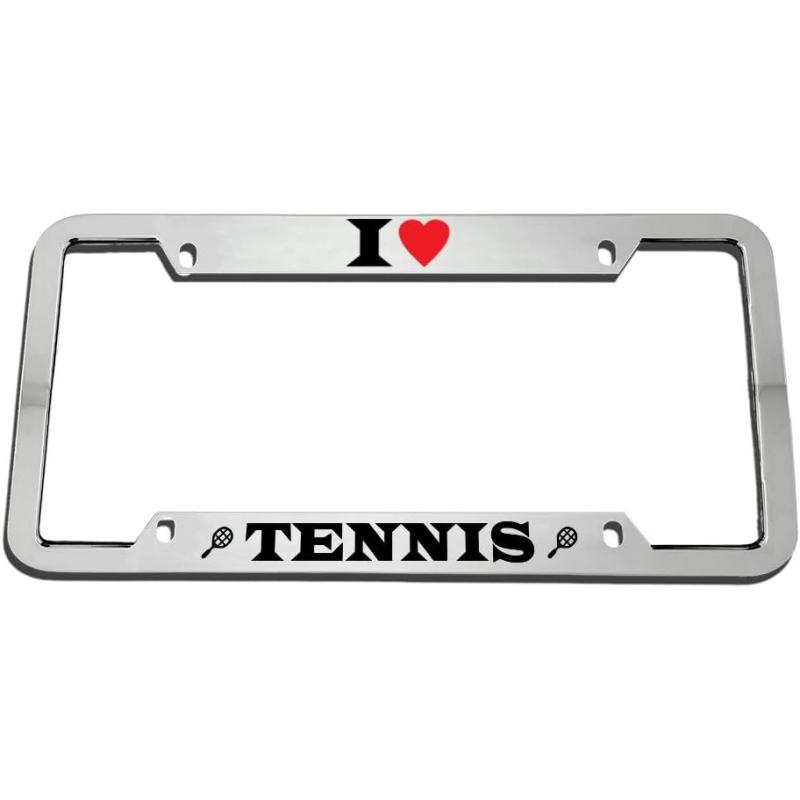 I Love Tennis Zinc Metal License Plate Frame Car Auto Tag Holder – Chrome 4 Holes(I Love Tennis Zinc Metal License Plate Frame Car Auto Tag Holder – Chrome 4 Holes)