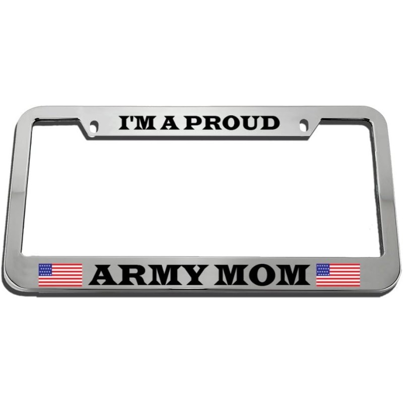 License Plate Frame I’m A Proud Army Mom Zinc Weatherproof Car Accessories Chrome 2 Holes 1 Frame(License Plate Frame I’m A Proud Army Mom Zinc Weatherproof Car Accessories Chrome 2 Holes 1 Frame)