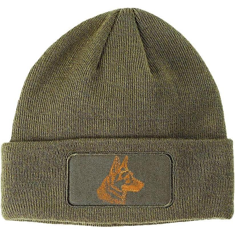 Patch Beanie German Shepherd Head Gold Embroidery Dogs Winter Hats 1 Size(Olive Green)