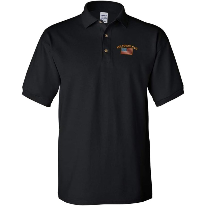 Polo Shirts for Men Air Force Dad A Embroidery Cotton Short Sleeves Golf Tees(Black)