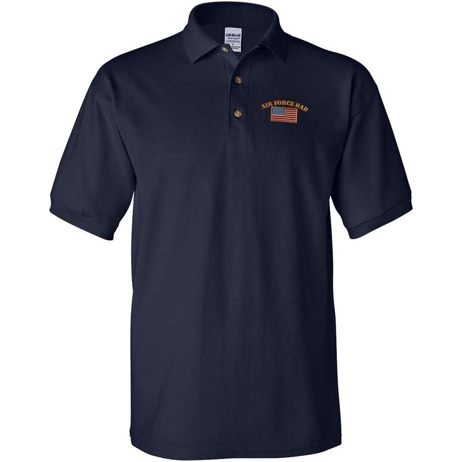 Polo Shirts for Men Air Force Dad A Embroidery Cotton Short Sleeves Golf Tees(Navy)