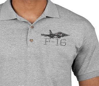 Polo Shirts for Men F-16 Fighting Falcon Airplane B Embroidery Cotton(Black)