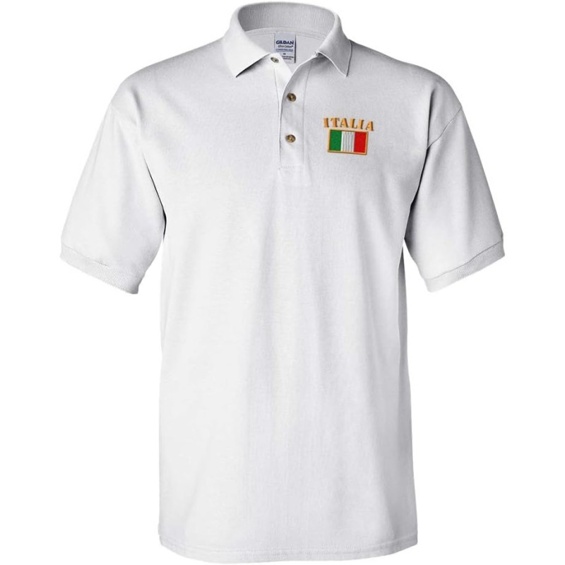 Polo Shirts for Men Italia Flag Embroidery Cotton Short Sleeves Golf Tees(White)