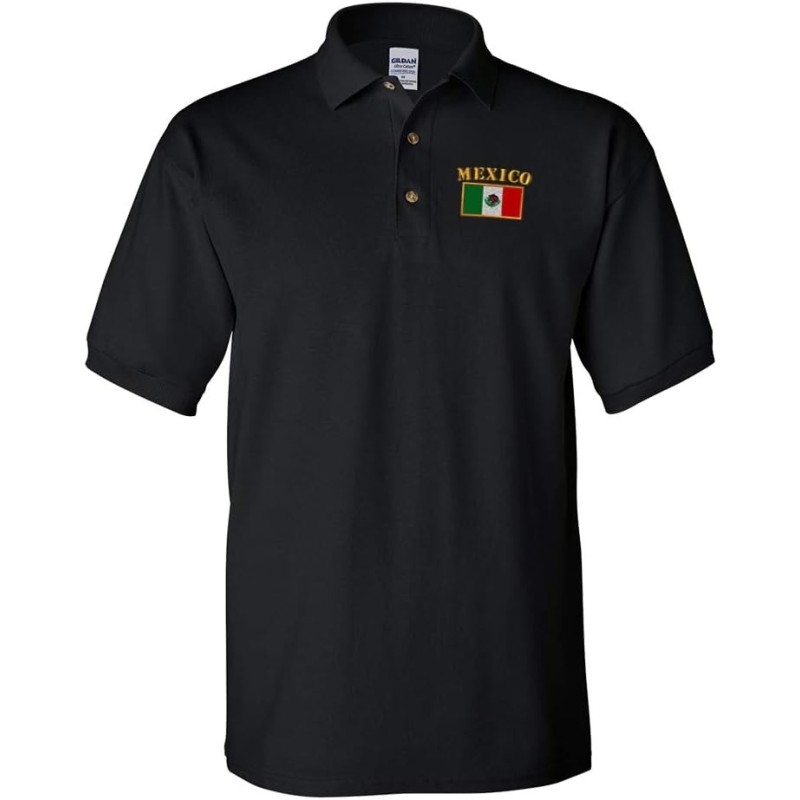 Polo Shirts for Men Mexico Flag Embroidery Cotton Short Sleeves Golf Tees(Black)