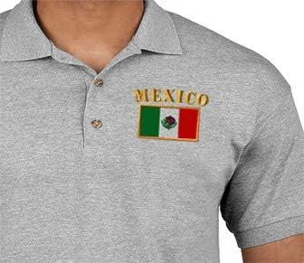 Polo Shirts for Men Mexico Flag Embroidery Cotton Short Sleeves Golf Tees(Oxford Grey)
