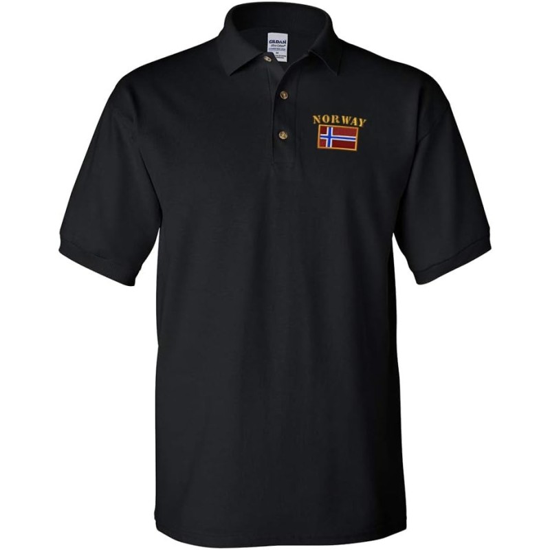 Polo Shirts for Men Norway Flag Embroidery Cotton Short Sleeves Golf Tees(Black)