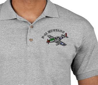 Polo Shirts for Men P-51 Mustang Aircraft Name Embroidery Cotton(Black)