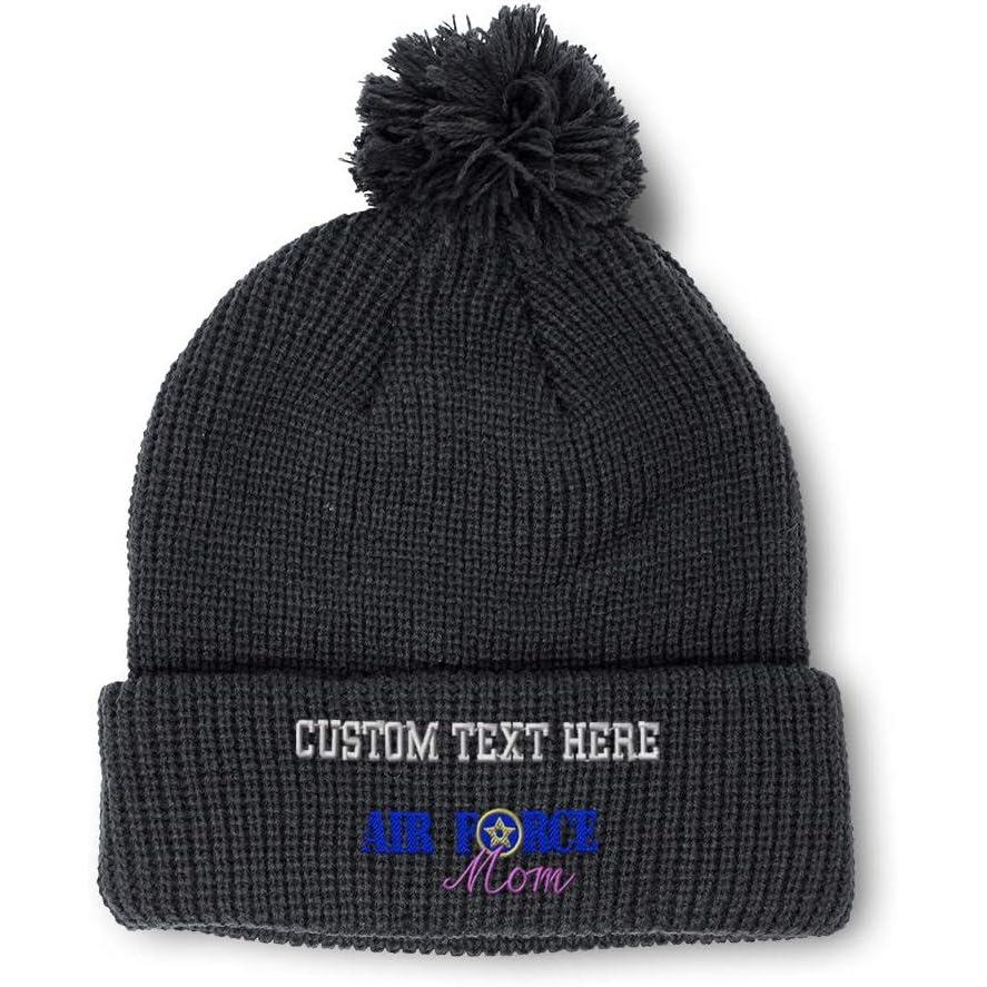 Pom Pom Beanies for Women Air Force Mom Embroidery Skull Cap Family Winter Hats for Men Acrylic 1 Size(Black Personalized Text Here)
