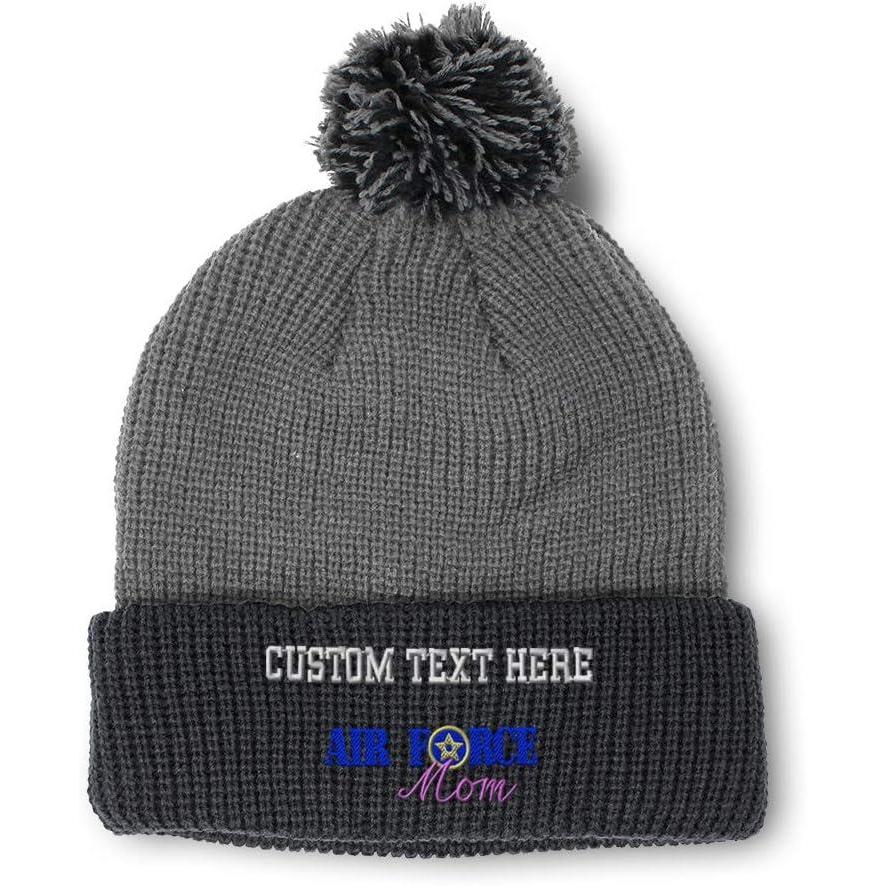 Pom Pom Beanies for Women Air Force Mom Embroidery Skull Cap Family Winter Hats for Men Acrylic 1 Size(Grey Black Personalized Text Here)