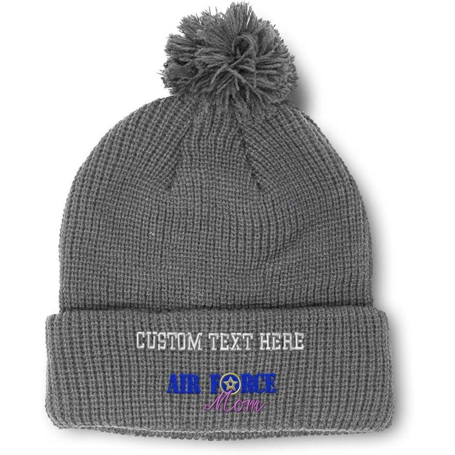 Pom Pom Beanies for Women Air Force Mom Embroidery Skull Cap Family Winter Hats for Men Acrylic 1 Size(Light Grey Personalized Text Here)