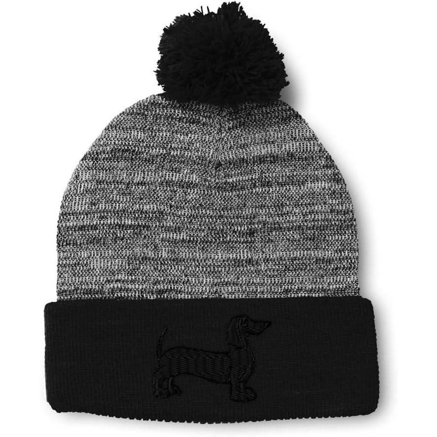 Pom Pom Beanies for Women Dachshund Dog Black Silhouette Embroidery Skull Cap Winter Hats for Men 1 Size(Heather Gray Black Design Only)